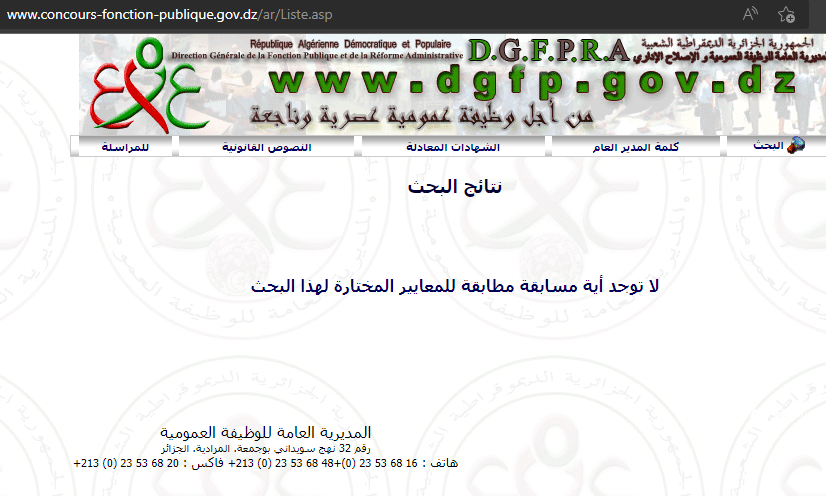 ربما تتساءل لماذا لا تتصفح موقع المديرية العامة للوظيفة العمومية مباشرة، الإجابة ببساطة لان مهما كانت الاختيارات التي تختارها فسيظهر لك الموقع دائما هذه الإجابة