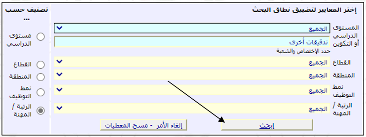 3. تظهر لك صفحة بها حقل البحث تترك كل شيء على الافتراضي وتنقر مباشرتا على "بحث"
