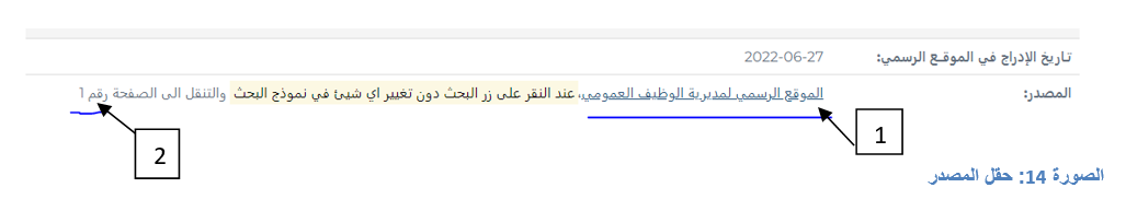 1. الدخول الى الموقع الرسمي من خلال النقر على "الموقع الرسمي لمديرية الوظيف العمومي" كما هو موضح في الصورة 14 العنصر (1)
