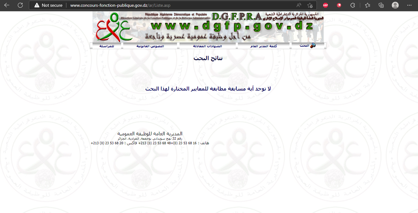 البحث لا يعمل في الموقع الرسمي للمديرية العامة للوظيفةالعمومية