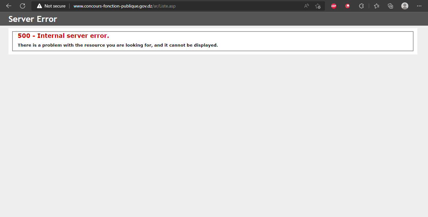 3. خطأ رقم 500 في الموقع الرسمي للمديرية العامة للوظيفةالعمومية